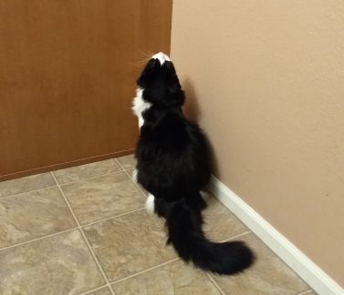 Toxoplasmosis is a parasite – a literal brain worm – that changes mouse behavior. It probably also changes human behavior. We catch it from cats. I find this very disturbing. Here’s a picture of my cat. He stares at this corner sometimes for no apparent reason and then makes sounds like he’s possessed. I hope it’s not brain worms.