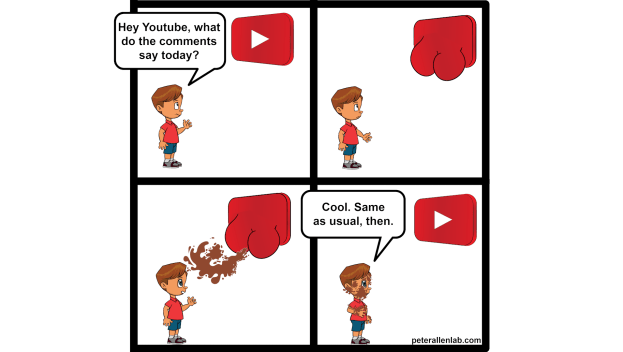 I wanted to fight with some YouTube commenters, but that’s dumb. Hence the comic. But I need to remember that most of the comments I get are very kind. It’s easy to focus on the negative.