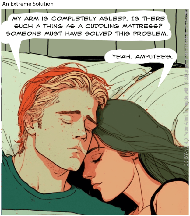 I’m a scientist and I want to communicate science with comics. I tried a bunch of ways to make a comics, and the MidJourney AI was my favorite. I tried conventional image software, collage software, I hired freelance artists, and generative AI. The fact is: making good art takes skill, time, and effort. Some art seems simple, but if people love it, it’s almost certainly a product of a lot of hard practice. AI is a shortcut. It uses other peoples’ art to generate higher quality comics than I can make, without me having to do the practice.