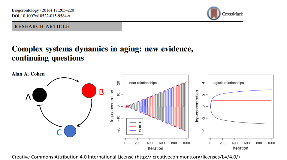 Cohen, Alan A. “Complex Systems Dynamics in Aging: New Evidence, Continuing Questions.” Biogerontology 17 (2016): 205–20. https://doi.org/10.1007/s10522-015-9584-x